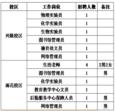 根据学校发展规划,南京市中华中学(兴隆校区、雨花校区)面向社会公开招聘15名编制外(劳务派遣)工作人员,现将有关事项公告如下。